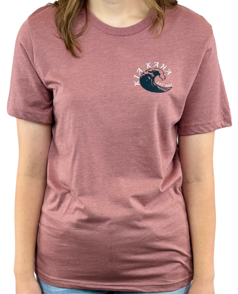 Ngaru = Wave. Premium feel. Short Sleeve T-Shirt. 52% Ringspun cotton 48% Polyester. Shoulder taping. Side-seamed. Unisex sizing. Retail fit.
